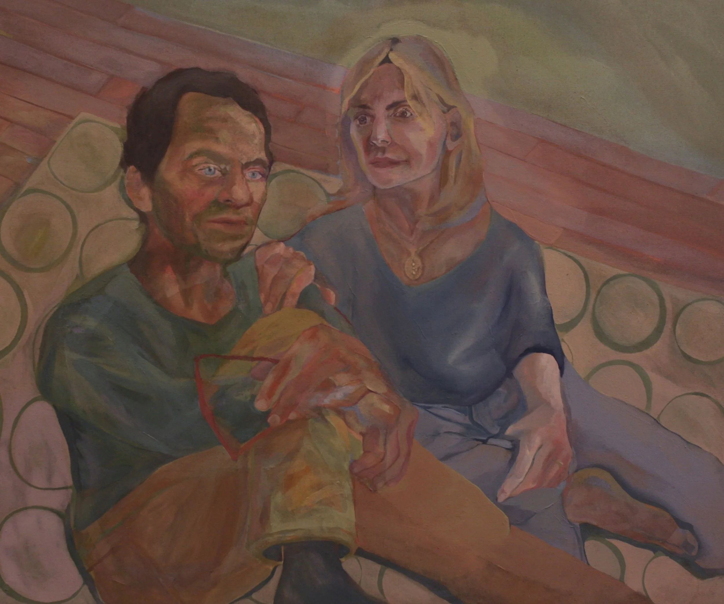 “Dad and Sharon, seated on their dotted rug”